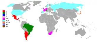- Vorrunde: 3× (13,6 %; 1958, 1962 und 2002)