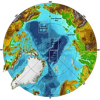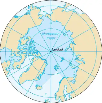 Der Arktische Ozean, auch Nordpolarmeer, Nördliches Eismeer, Arktische See oder kurz Arktik genannt, ist mit 14,09 Millionen km² der kleinste Ozean der Erde. Mit einer durchschnittlichen Wassertiefe von 987 m zählt er zu den flacheren Meeren, seine größte Tiefe beträgt 5669 m.[1] Er wird manchmal auch als Nebenmeer des Atlantischen Ozeans betrachtet. Der Arktische Ozean liegt in der Arktis und ist ganzjährig von Meereis bedeckt, wobei die Ausdehnung des Eises jahreszeitlich schwankt und durch den Klimawandel massiv abgenommen hat.[2] Laut NASA verringert sich die sommerliche Meereisbedeckung derzeit um 12,6 % pro Dekade aufgrund von globaler Erwärmung.[3]