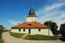 Das Gebäude ist ein einstöckiges, nahezu quadratischer Zentralbau ohne Keller mit 19,5 Metern Seitenlänge und einem mittig angeordneten Turm mit spitzem Turmhelm und einer Höhe von 10,5 Metern. Im Turmuntergeschoß war ein tonnengewölbter Kapellenraum untergebracht. An der Südwest-Ecke ist ein Stützpfeiler angebaut, dessen Konstruktion wohl aufgrund der Hanglage notwendig war.