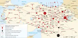 - ↑ Vertrag von Moskau (1921) 16. März 1921 und Vertrag von Kars. Enddatum hierfür 11. März 1928, wobei die türkische Seite die Rückkehr von Armeniern verhinderte. Große Teile jener Gebiete waren erst 1878 durch den Frieden von San Stefano russisch geworden. Schon damals gab es eine Optionslösung mit Umsiedlungsmöglichkeit.