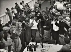 Von Zürich aus hatte sich Studiosus Fanck zusammen mit seinem ein Jahr jüngeren, aber bergsteigerisch erfahreneren Studienfreund Hans Eduard Rohde (1890–1915) und Walter Schaufelberger ab 1911 ganz dem Alpinismus verschrieben,[51][52][43][11][53][54] sie wurden zeitgenössisch formuliert zu „Bergvagabunden“ bzw. „Freunden am Seil“.[55][56] Arnold Fanck suchte das Abenteuer ebenso wie die Herausforderung durch extreme Bedingungen, überwand die Ängste seiner Kindheit und nahm,[43] auch angesichts damals rudimentärer Ausrüstung, hohe Risiken in Kauf.[57][22][11] Zusammen mit dem als Draufgänger charakterisierten Rohde absolvierte er 1911 als 22-Jähriger beispielsweise eine winterliche Erstbegehung des Matterhorns über den Zmuttgrat.[58]