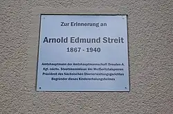 1913/1914 ließ er von der Gemeinnützigen Stiftung der Amtshauptmannschaft Dresden-Altstadt das nach ihm benannte Dr. Streit-Erholungsheim für schulpflichtige Kinder in Hintergersdorf (heute: Kurort Hartha) errichten, das im Ersten Weltkrieg 1914–1918 als Vereinslazarett bzw. ab Februar 1945 kurzzeitig als Dresdner Landratsamt genutzt wurde und seit 1. Oktober 1945 als Schule dient. Eine Gedenktafel für Arnold Streit als Begründer des Kindererholungsheims wurde im Rahmen eines Festakts zum 100. Jahrestag am 21. Juni 2013 an der Grundschule „Bernhard Hantzsch“ in Kurort Hartha angebracht. Eine weitere Tafel weist schon seit 1995 auf das nach ihm benannte Kinderheim an der heutigen Grundschule hin.
