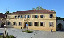Östlich anschließend an das Herrenhaus befindet sich eine inschriftlich auf 1605 datierte Toranlage der Spätrenaissance mit einem Attikaaufsatz aus einem Wechsel von drei Dreiecks- und zwei Halbkreisgiebeln. An der östlichen der als Rundbogen ausgeführten Tordurchfahrt gelegenen Mannpforte befindet sich ein mit Beschlagwerk und Muscheldekor verziertes Sitznischenportal. Östlich an die Toranlage grenzt ein in Fachwerkbauweise errichtetes Wirtschaftsgebäude an.