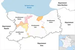 ![]() Lage des Arrondissements Caen in der Region Normandie | |