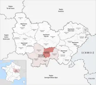 ![]() Lage des Arrondissements Chalon-sur-Saône im Département Saône-et-Loire | |