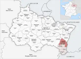 ![]() Lage des Arrondissements Colmar-Ribeauvillé im Département Haut-Rhin | |