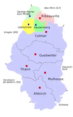 Die größte Gemeinde des Arrondissements war Sainte-Marie-aux-Mines (Markirch) (5816 Einwohner)