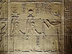 Ptolemaios II. und Arsinoë II. erweiterten ferner den eponymen Alexanderkult, indem sie ihre verstorbenen Eltern vergöttlichen und sich um 272 v. Chr. auch selbst als „Geschwistergötter“ (Θεοὶ Ἀδελφοί Theoi Adelphoí) in den dynastischen Kult aufnehmen und verehren ließen. Der Nauarch Kallikrates von Samos war der erste eponyme Priester der Theoi Adelphoí.[34][35] Ägyptische Priester verliehen Arsinoë in hieroglyphischen Dokumenten den Titel einer Königin von Ober- und Unterägypten bzw. Herrscherin der beiden Länder. Sie stand daher aus eigenem Recht neben Ptolemaios II.[36][23]
