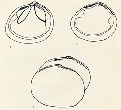 Die gleichklappigen Gehäuse werden bis etwa 6 mm lang (der Holotyp misst 4 mm in der Länge, 3,25 mm in der Höhe und 2 mm in der Dicke). Sie sind ungleichseitig, die Wirbel sitzen deutlich hinter der Mittellinie. Die Wirbel sind klein und sind nach vorne eingedreht, treten aber kaum hervor. Die Gehäuse sind im Umriss rundlich-oval. Der vordere Dorsalrand ist weit gewölbt und fällt etwas flacher ab als der hintere, fast gerade Dorsalrand. Der Vorderrand ist eng gerundet, der Hinterrand wirkt etwas abgestutzt. Der Ventralrand ist weit gerundet.