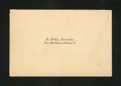 Schnitzler verwendete ab 1905 für gewöhnlich Briefpapier, Postkarten und Umschläge, die seine Adresse vorgedruckt hatten. Das gilt für die beiden Wohnadressen, die er von da an noch bewohnte, die Spöttelgasse 7 (heute: Edmund-Weiß-Gasse) und, ab Oktober 1910, die Sternwartestraße 71.[13]