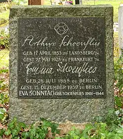 - ↑ Grab von Arthur Schoenflies auf dem Frankfurter Hauptfriedhof (Gewann XIV, Grab 403 UG, Lage, Bild)