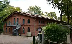 Die Remise entstand im Jahr 1868 als Artillerie-Wagenhalle. Sie war Bestandteil der Festungsanlagen Wittenbergs und gehörte zum Gebiet der Bastion Dänen. Der große zweigeschossige Backsteinbau gilt als erhaltenes Zeugnis des Festungsbaus in der Mitte des 19. Jahrhunderts.