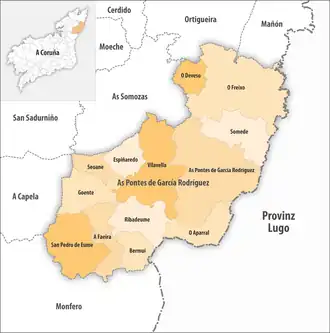 Die Gemeinde As Pontes de García Rodríguez ist in 13 Parroquias gegliedert: