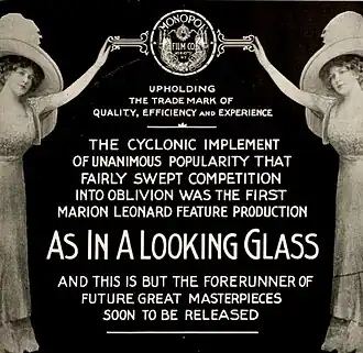 - ↑ a b As in a Looking Glass, Anzeigenwerbung der Monopol Film Company. In: The Moving Picture World, Band 15, No. 8, 22. Februar 1913, S. 741, Digitalisat.
