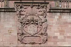 Fenstersturz am Schloss Johannisburg mit Mainzer Rad und Elementen des Wappens der Familie von Cronberg