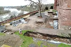 In den Jahren 2019/2020 wurde auf der Schlossterrasse, dem schmalen Streifen zwischen dem Schlossbau und dem Geländer zum Mainufer, eine archäologische Untersuchung durchgeführt[9]. Basis war ein Gartenplan aus dem Jahre 1744, der hier eine zumindest kleine barocke Gartengestaltung vorsah. Es war nicht klar, ob es sich um eine Darstellung eines Bestandes oder eine nicht ausgeführte Entwurfskizze handelt. Laut einem Medienbericht über den Fortschritt der Arbeiten wird es aufgrund von Spuren im Boden als wahrscheinlich angesehen, dass hier früher eine barocke Gartenanlage bestanden habe. Die Anlage habe eine heute nicht mehr sichtbare „Dreidimensionalität“ aufgewiesen mit Höhenunterschieden von bis zu sechs Metern, die auf dem alten Gartenplan jedoch nicht dargestellt sei. Erst der Architekt Emanuel Joseph von Herigoyen, der auch das Schlossinnere erneuerte, habe gegen Ende des 18. Jahrhunderts mit der „barocken Verspieltheit“ im Sinne des Klassizismus Schluss gemacht und das Schlossumfeld auf ein einheitliches Niveau gebracht.