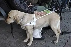 Ein Assistenzhund ist ein Hund, der nach spezieller Ausbildung in der Lage ist, bei Menschen behinderungsbedingte Nachteile auszugleichen und ihnen die Teilhabe am gesellschaftlichen Leben zu ermöglichen oder zu erleichtern.[1] Es gibt fünf verschiedene Assistenzhundearten in Deutschland, die unterschiedliche behinderungsbedingte Nachteile ausgleichen können.[2] Assistenzhunde besitzen spezielle Rechte, auch Zutrittsrechte genannt,[1] die seit 2021 und 2023 im BGG und in der AHundV festgeschrieben sind.