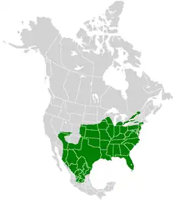 Die Art ist in Nordamerika von der subtropischen bis zur gemäßigten Zone verbreitet. Ihr Verbreitungsgebiet reicht vom Süden Mexikos nordöstlich in den Südwesten der USA bis nach Nebraska und in weite Teile der östlichen USA. Ausnahmen bilden hier die nördlichen Hälften von Wisconsin, Michigan und New York sowie Neuengland. Er ist häufig in Nord und Zentral Florida ist aber selten in Südflorida.[2]