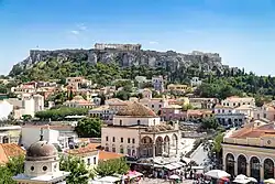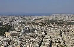 Athen – neugriechisch [] (f. sg.), Katharevousa und altgriechisch Ἀθῆναι Athênai (f. pl.) – ist die Hauptstadt Griechenlands. Athen ist die bevölkerungsreichste und flächengrößte Stadt des Landes. Die Gemeinde Athen im Zentrum des gleichnamigen Ballungsraums ist mit einer Fläche von etwa 39 km² dabei relativ klein. Der Ballungsraum umfasst das Gebiet der Regionalbezirke Athen-Zentrum (88,1 km²), Athen-Nord (133,9 km²), Athen-Süd (70,2 km²), Athen-West (67,7 km²) und Piräus (51,3 km²) mit zusammen fast 3 Mio. Einwohnern (2021).[2] Die ebenfalls relativ kompakte Agglomeration, deren Kern die Gemeinde Athen bildet, hat nach Eurostat ca. 3,8 Mio. Einwohner[3], andere Schätzungen gehen allerdings auf Grund der fehlenden Meldepflicht von mindestens 5 Mio. Einwohnern aus.[4]