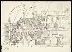 Bleistiftzeichnung des Promenadendecks mit Rettungsboot (1923)