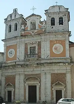 - An der zentralen Piazza Garibaldi sieht man einen Abschnitt der vorrömischen Polygonalmauer mit einem Tor. Auf derselben Seite steht der Komplex des ehemaligen Franziskanerklosters mit der Kirche S. Francesco von 1630 mit einer vorgeblendeten Portikus aus vier Arkaden; dahinter erhebt sich der Oberteil der Kirchenfassade. Im Innenraum ist eine Freskenausstattung vorhanden. Im Herbst 2006 wurde vor dem Konvent, in dem heute Gemeindeämter arbeiten, eine antike Zisterne aus Polygonalmauerwerk mit Ziegelboden entdeckt.