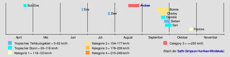 | Stärkster Sturm | Andrew – 922 hPa (mbar), 150 kn (278 km/h) |