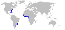Das Verbreitungsgebiet dieser Art umfasst mehrere voneinander isolierte Gebiete im Atlantik vor den Küsten Nord- und Südamerikas sowie Westafrikas. Dabei findet er sich im westlichen Atlantik von Delaware bis Florida sowie um die Bahamas und Kuba. Das südamerikanische Verbreitungsgebiet liegt vor dem südlichen Brasilien und Argentinien. Im östlichen Atlantik umfasst das Gebiet die Küstengebiete vor dem Senegal, vor Côte d’Ivoire, Ghana, Zaire und Angola.