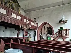 - Evangelische Pfarrkirche St. Johannes: Der kleine Turm ist ein Überbleibsel einer ehemaligen Kirchenburganlage.
