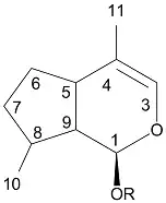 Aucubin ist ein häufiger sekundärer Pflanzenstoff aus der Gruppe der Iridoidglycoside. Es ist ein Glykosid des Aglykons Aucubigenin mit einer Einheit Glucose.