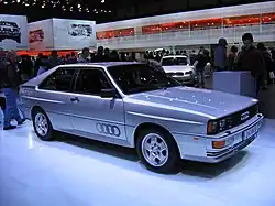 - ↑ Bereits 1966 bzw. 1972 waren der Jensen FF bzw. der Subaru Leone mit permanentem Allradantrieb vorgestellt worden. Beide Autos spielten aber auf dem europäischen Markt nahezu keine Rolle. Vom hochpreisigen Jensen FF entstanden in fünf Jahren insgesamt nur 320 Autos, und der nur begrenzt exportierte Leone war in der Allradversion zunächst nur als Kombi erhältlich. Vgl. Markus Stier: 40 Jahre quattro. Die Stunde vier. walter-magazin.de, 20. März 2020, abgerufen am 8. September 2022.