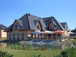 • Oberhalb von Kanupark und Badestrand befindet sich das Feriendorf Seepark Auenhain mit 32 Ferienhäusern in verschiedenen Ausführungen und 6 Appartement-Häusern sowie dem Restaurant „Seeperle“, dem „Seestern“ – einer Wellness-, Pool- & Beautylandschaft – und dem Kinderhaus „Seepferdchen“.[6]