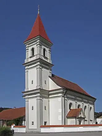 Die katholische Filialkirche St. Bartholomäus in (Hinter-)Auerbach ist ein einheitlicher barocker Saalbau mit eingezogenem halbrundem Chor, von Anton Kogler um 1720 erbaut.[3]