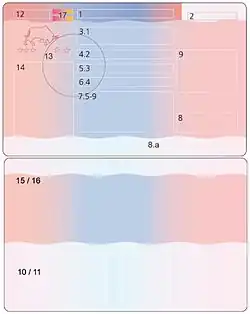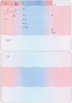 - PERMIS DE ȘEDERE (Aufenthaltserlaubnis) – tipul de permis (Art der Erlaubnis): REZIDENT PE TERMEN LUNG CE (Erlaubnis zum Daueraufenthalt — EG); dieses Dokument wurde seit 2007 Ausländern ausgestellt, denen eine langfristige Aufenthaltsberechtigung gewährt oder verlängert wurde und hat eine Gültigkeitsdauer von fünf (Regelfall) bis zehn Jahren (für Familienangehörige rumänischer Bürger). Unter „Observații“ (Bemerkungen) wird die dem Ausländer zugewiesene persönliche Kennnummer eingetragen.[8]