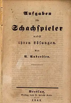 Als der 24-jährige Adolf Anderssen 1842 seine Sammlung gleichen Haupttitels veröffentlichte, war er noch ein relativ unbekannter Schachspieler aus der deutschen Provinz, nämlich in Breslau. Sein Ruhm als Partiespieler etablierte sich erst neun Jahre später mit seinem Sieg im Schachturnier zu London 1851. Mit der stark patriotisch gefärbten Begeisterung für Anderssen ab 1851 geriet weitgehend in Vergessenheit, dass er zuerst, und dies recht erfolgreich, als Schachkomponist an eine größere Öffentlichkeit getreten war.[2]