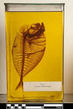 Die vorhergehende Differenzierung einzelner Gewebe geschieht durch Färbung (Knochenkerne, Knorpel, Nerven…) oder dadurch, dass man nicht entkalkt (Knochen). Durch Injektion stellt man Hohlsysteme dar (Blutgefäße, Gallengänge).