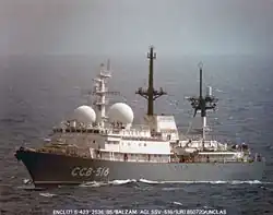 Die sowjetische Marine verfügte über mindestens zwei Aufklärungsschiffsklassen, nämlich das Projekt 864 (NATO-Codename: Vishnya-Klasse) und das Projekt 1826 (NATO-Codename: Balzam-Klasse). Beide Schiffsklassen finden heute noch Verwendung in der russischen Marine. Seit den 1980er-Jahren war bekannt, dass einige sowjetische Fischtrawler mit Aufklärungstechnik ausgestattet waren.[5]