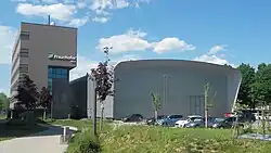 Die Förderung des Fraunhofer-Forschungsinstituts setzt sich beispielsweise aus Mitteln des EFRE (Europäischer Fonds für regionale Entwicklung) (3,95 Mio. Euro) und des Freistaats Bayern (3,55 Mio. Euro) zusammen. Damit können Technikumshalle, Büro und Laborgebäude des rund 3.600 Quadratmeter großen Fraunhofer-Neubaus realisiert werden. Dessen Gesamtbaukosten werden auf etwa elf Mio. Euro geschätzt. In das neue Fraunhofer-Forschungszentrum wird ab Mitte 2012 die Fraunhofer-Projektgruppe „Funktionsintegrierter Leichtbau“ ziehen. Sie soll die Basis für die Gründung eines eigenständigen Fraunhofer-Instituts in Augsburg schaffen.[19] Möglichkeiten für eine Zusammenarbeit zwischen Unternehmen und Wissenschaftlern laut Professor Klaus Drechsler, Leiter der Fraunhofer Projektgruppe Funktionsintegrierter Leichtbau und Inhaber des SGL Group-Stiftungslehrstuhls für „Carbon Composites“ an der Technischen Universität München[20], viele. Das Spektrum reiche von Praktika für Studierende über die Vergabe von Diplomarbeiten bis hin zu Kooperationen mit Forschungseinrichtungen.[21] Im Mai 2013 wurde das Gebäude eröffnet.[22][23]
