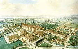 | 1876 | Neues Wohnquartier | 1904 waren 25 % der Belegschaft in Werkswohnungen untergebracht (siehe auch Kammgarnquartier) |