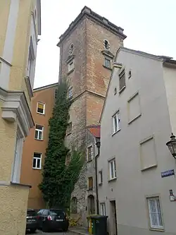 Springergässchen: Turm am Anschluss der Mauer der Oberen Stadt an die der Bischofsstadt, heute Wohnhaus