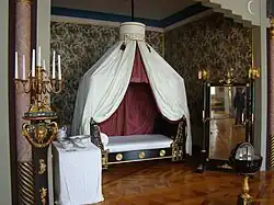 Napoleon Bonaparte, der seine Briefe an August stets mit mon cousin (mein Vetter) begann und mit votre cousin (euer Vetter) beendete, besuchte den Herzog als Zeichen seiner Wertschätzung mehrmals in Gotha, übernachtete jedoch nie (wie es die Gothaer Sage Das Bett als Sarg[1][2] berichtet) auf dem Friedenstein. Folgende (z. T. sehr kurze) Aufenthalte Napoleons I. in der Residenzstadt und Zusammentreffen mit Herzog August sind belegt: 23. Juli 1807 (Empfang auf dem Schloss und Mittagstafel mit dem Herzogspaar), 27. September 1808 (auf dem Weg zum Erfurter Fürstenkongress, Gespräch mit Herzog August und Abendessen auf dem Schloss), 14. Oktober 1808 (auf dem Rückweg vom Fürstenkongress, Halt am Schloss Friedrichsthal und kurzes Gespräch mit August), 15. Dezember 1812 (auf dem Rückweg von Russland, keine Begegnung mit August), 25. Oktober 1813 (auf dem Rückweg von Sachsen, Übernachtung im Gasthof Zum Mohren, keine Begegnung mit August).