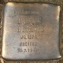 - ↑ Laut der Festschrift zur 250jährigen Jubelfeier des Gymnasiums. St. Maria Magdalena zu Breslau soll dort zu Michaeli 1863 und unter dem Vorsitz des Regierungs- und Provinzial-Schulrates Scheibert der spätere „[...] August Albert Burchard, Dr. med., Sanitätsrat in Breslau,“ sein Abitur abgelegt haben, Vergleiche ebda; Transliteration auf der Seite forum.ahnenforschung.net, zuletzt abgerufen am 22. Januar 2017