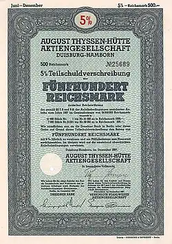 Teilschuldverschreibung über 500 RM der August Thyssen-Hütte AG vom Dezember 1937