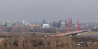 Werksanlagen der August Thyssen-Hütte in Bruckhausen im Jahre 2010 (heute: Thyssenkrupp Steel), gesehen von der Halde Rheinpreußen in Moers