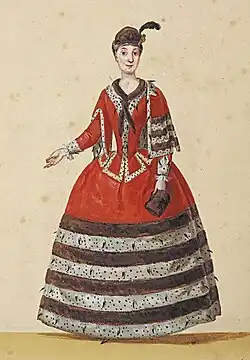 - ↑ a b c d Claudia Schnitzer, Petra Hölscher: Eine gute Figur machen: Kostüm und Fest am Dresdner Hof. Verlag der Kunst, Dresden 2000, S. 225, 234ff. Zuletzt abgerufen am 29. Dezember 2019.