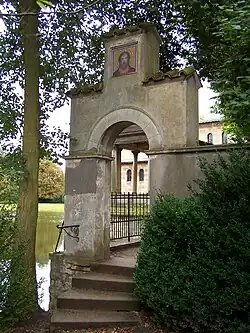 - Friedenskirche, Potsdam, Christuskopf in Glorie auf Lavatafel, 1852 (an der Erlöser- oder Christuspforte, die vom Park Sanssouci auf das Kirchengelände führt)