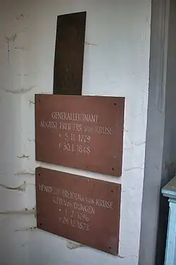 - Karl Schwartz.: Kruse, August Freiherr von. In: Allgemeine Deutsche Biographie (ADB). Band 17, Duncker & Humblot, Leipzig 1883, S. 258–261.
