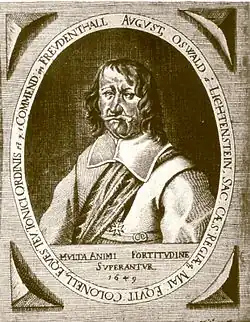 Augustin Oswald von Lichtenstein-Karneid († 1663) war Obrist in kaiserlichen Diensten während des Dreißigjährigen Krieges, sowie Mitglied des Deutschen Ordens. Er war Hauskomtur und Komtur in Horneck, sowie Statthalter der Herrschaften Freudenthal und Eulenburg, Landkomtur der Ballei Westfalen und gleichzeitig Komtur von Mülheim und Münster. Zuletzt war er im Range eines Statthalters in Mergentheim auch Mitglied im Regentschaftsrat des Ordens für den unmündigen Hochmeister Karl Joseph von Österreich.