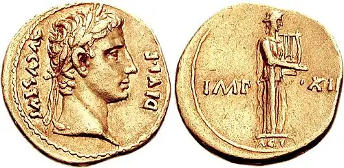 Augustus (* 23. September 63 v. Chr. als Gaius Octavius in Rom;[1] † 19. August 14 n. Chr. in Nola bei Neapel) war der erste römische Kaiser.