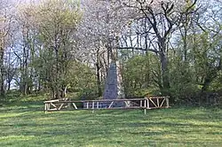 Während des Zweiten Weltkrieges war ab Herbst 1941 auf der Gemarkung Aulenbach ein Arbeitslager für etwa 450 sowjetische Kriegsgefangene (Lager Aulenbach) eingerichtet, die zumeist aus dem Stalag 356 (Senne) stammten.[4] Nach dem Ende des Krieges wurden hier die osteuropäischen Zwangsarbeiter der weiteren Umgebung zentral zusammengefasst und im Lager kaserniert (Displaced Persons). Zur Erinnerung an die während der Gefangenschaft und in der Nachkriegszeit im Lager gestorbenen Menschen wurde nach 1945 auf der Gemarkung eine hohe Steinpyramide als Denkmal errichtet („Russendenkmal“).
