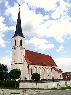Die spätgotische Pfarrkirche Heiligkreuzauffindung wurde 1515 erbaut und 1897 verlängert. Der Turm stammt aus dem Jahr 1887. Das einschiffige Bauwerk hat einen eingezogenen Chor und ein Netzrippengewölbe mit gekehlten Rippen. Im 20. Jahrhundert erhielt die Kirche eine moderne Ausstattung.